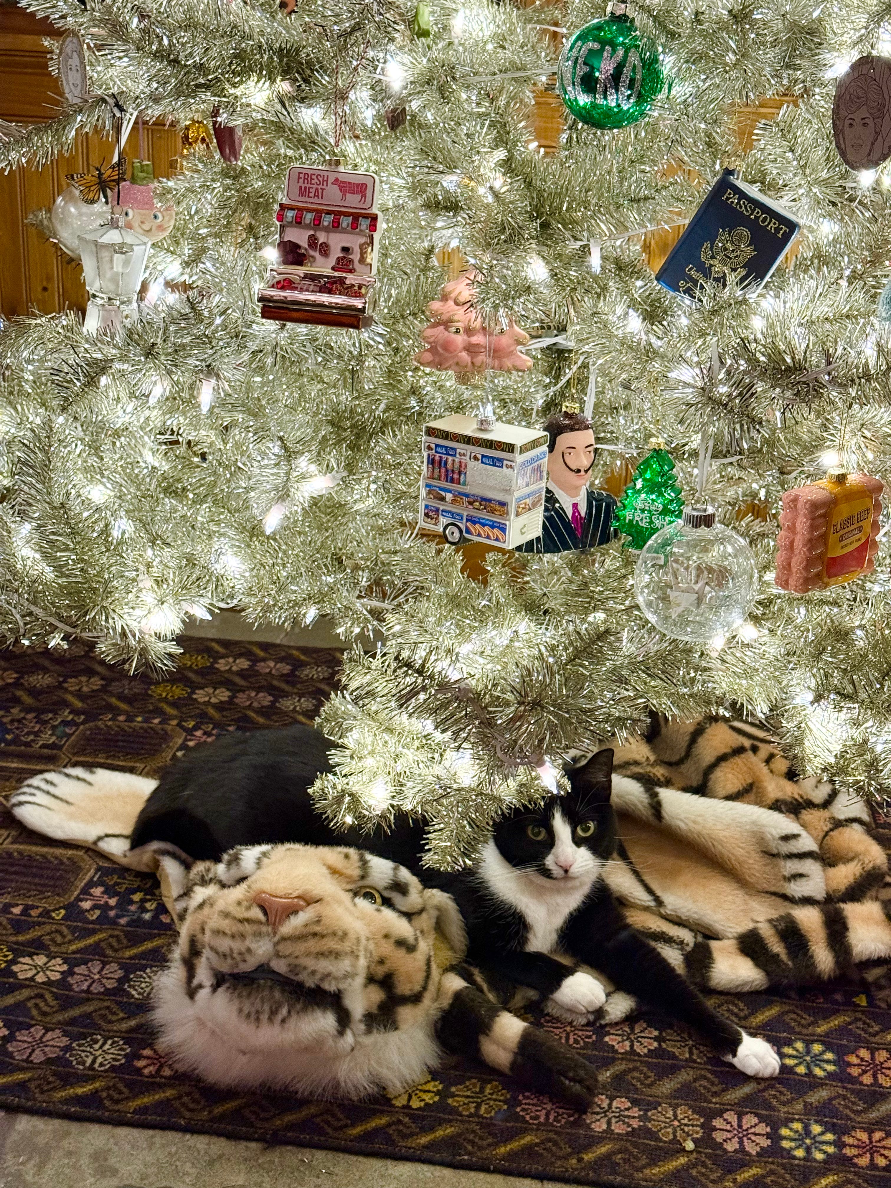 Marcia having pinned the tiger under the Christmas tree bolsters me some.